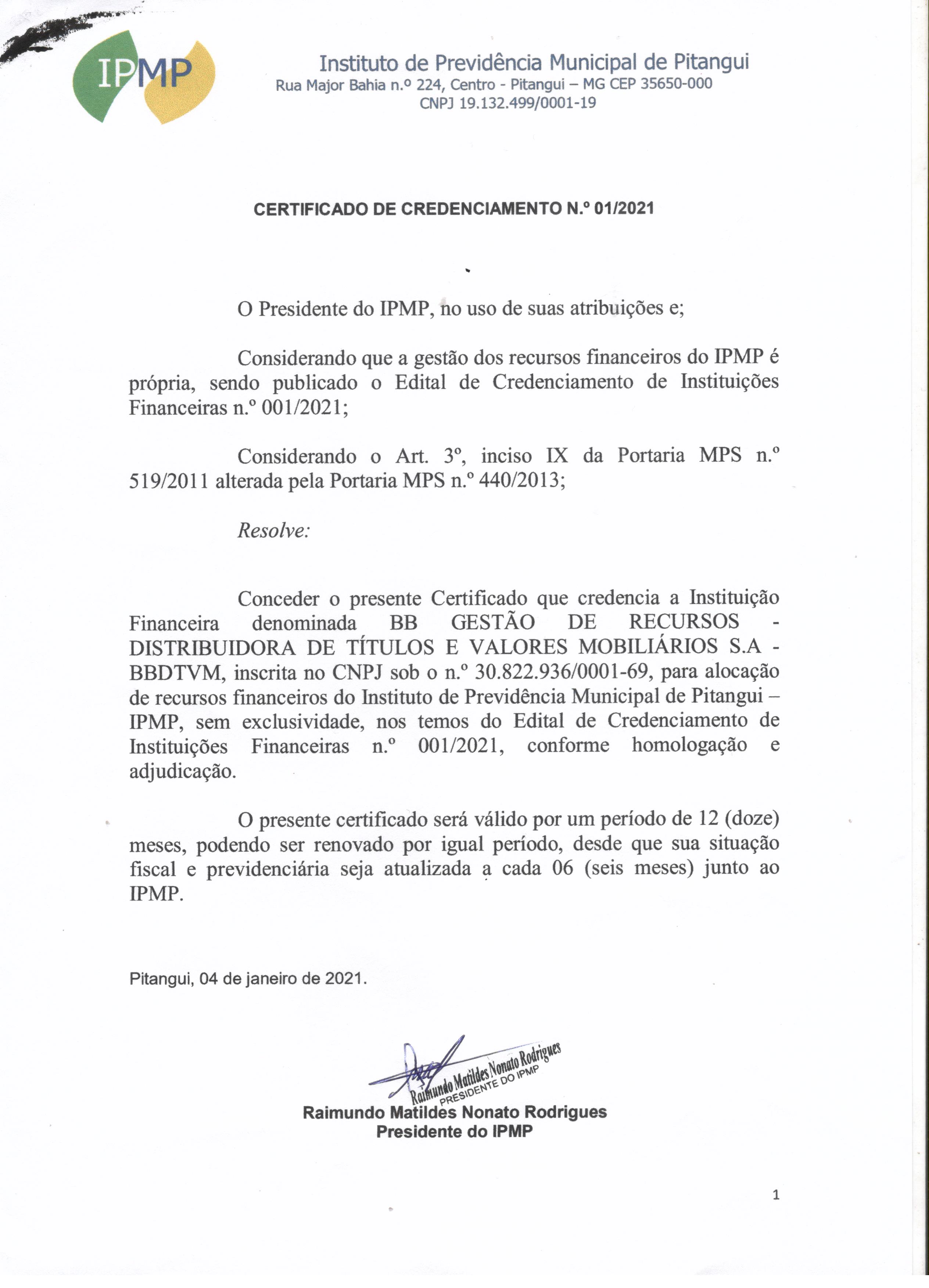 - IPMP - Instituto de Previdência Municipal de Pitangui
